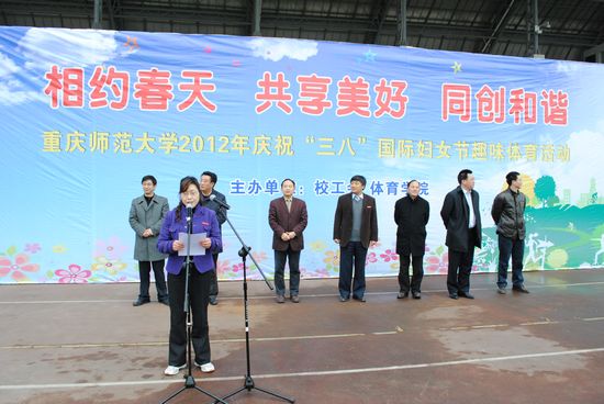 “相约春天、共享美好、同创和谐”。3月8日下午,由校工会主办的一场别开生面的庆“三八”趣味体育活动在大学城校区田径运动场隆重举行,来自各sm调教简介 、部门工会的23支由男女教职工混合组成的队伍及啦啦队近千人参加了此次活动。sm调教 教职工在院党政的大力支持下,在sm调教简介 工会的认真组织下,齐心协力,顽强拼搏,再一次在全校性活动中谱写辉煌,勇夺团体总分第四名,荣获二等奖。