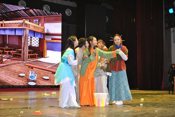 伴随着热烈的掌声,晚会现场高潮迭起。既有动感十足的现代舞也有轻盈优美的民族舞;既有帅酷青春、引领时尚的街舞也有教师代表的群舞;既有劲爆帅气、惊险刺激的武术表演又有水袖轻扬、诗情画意的古典舞;既有发人深思的歌舞情景剧也有诙谐幽默的小品,形式多样的节目,缤纷绚烂的背景,让晚会现场的气氛热烈非凡。晚会在sm调教