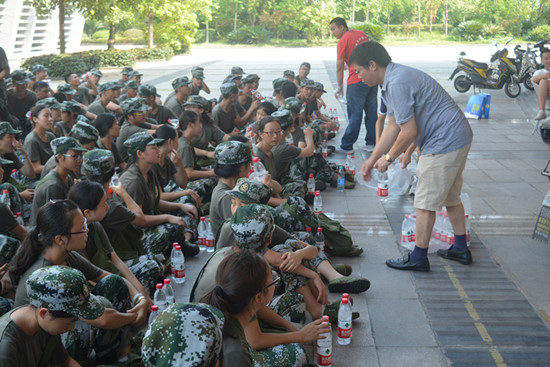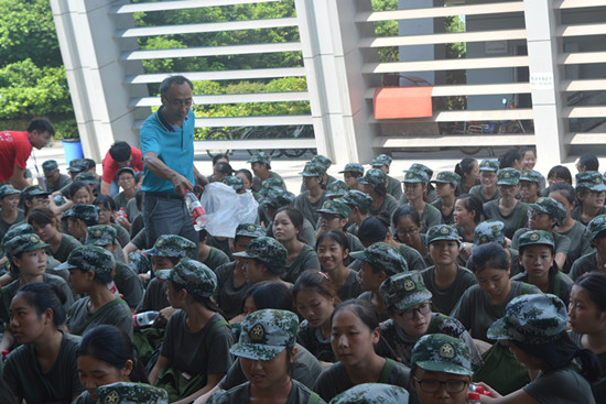 领导将矿泉水分发至每一位同学手中,鼓励同学们继续发扬吃苦耐劳的精神,确保军训实效。相信同学们在sm调教简介