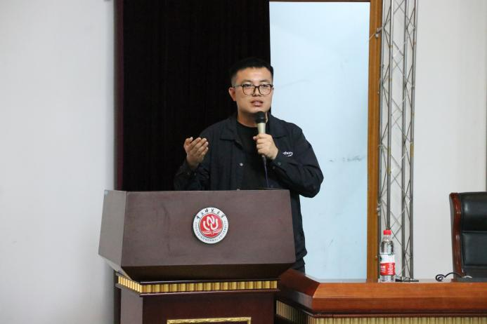 团委书记学工办主任钟华主持,邀请到已毕业的优秀校友冯李磊和梁俊杰。
