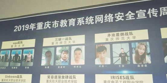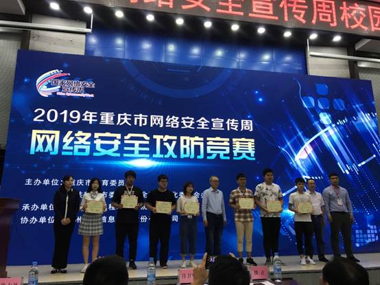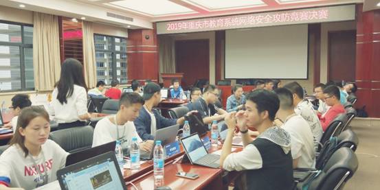 举行。作为校园日活动之一的2019年重庆市教育系统网络安全攻防竞赛决赛也在这里拉开序幕。本次网络安全攻防竞赛从筹备、报名、初赛到决赛历时近2个月,共有300余支队伍、1100多人报名参赛。通过初赛选拔,最终有20支队伍进入决赛,我校由兰晓红老师指导的两支队伍进入决赛。